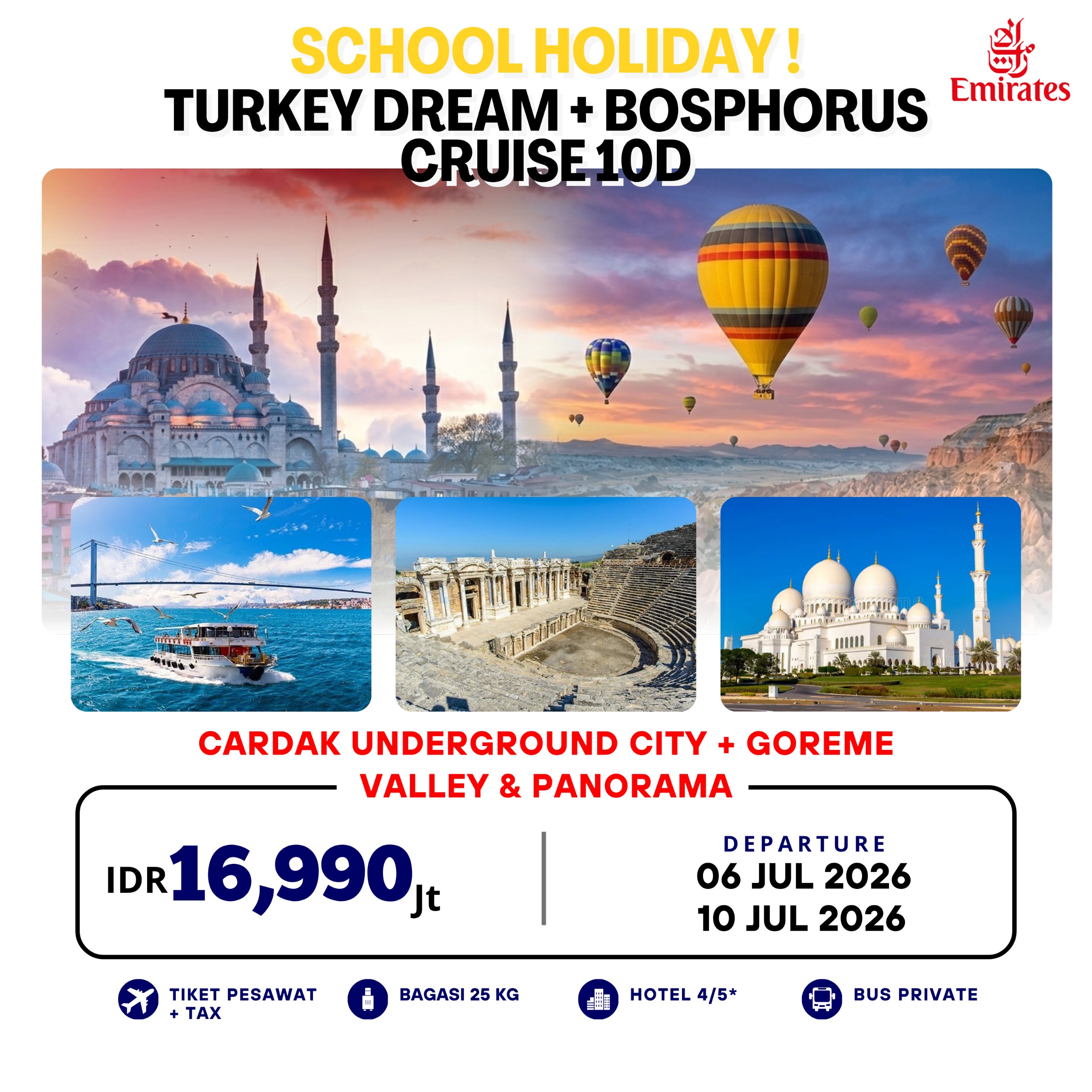 10D EDISI LIBUR SEKOLAH TURKEY DREAM + BOSPHORUS CRUISE By Emirates