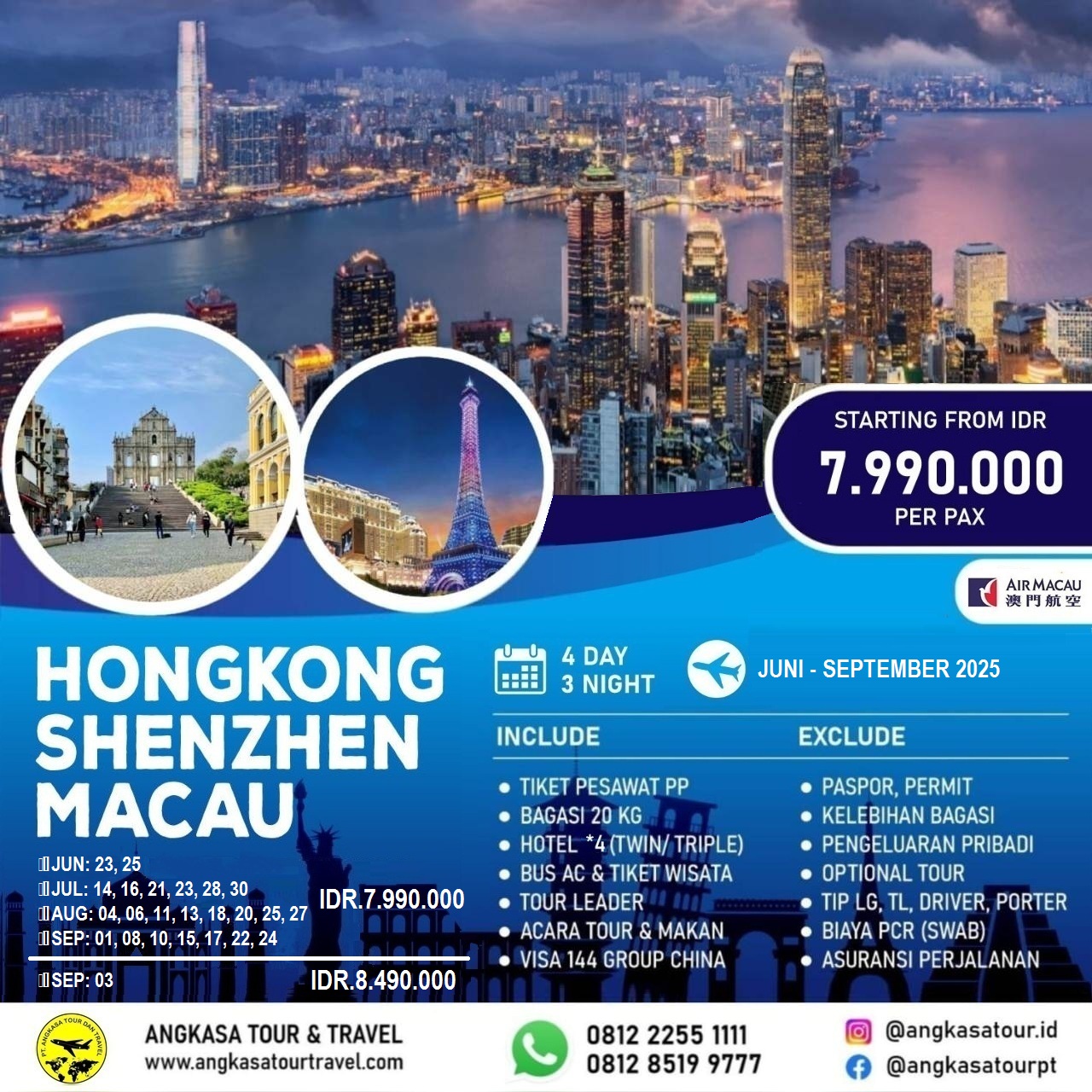 4D3N HONGKONG SHENZHEN MACAU : JUN - SEP 2025 : by Air Macau