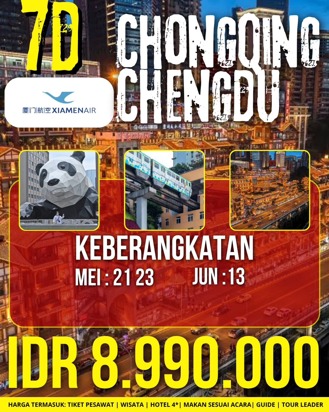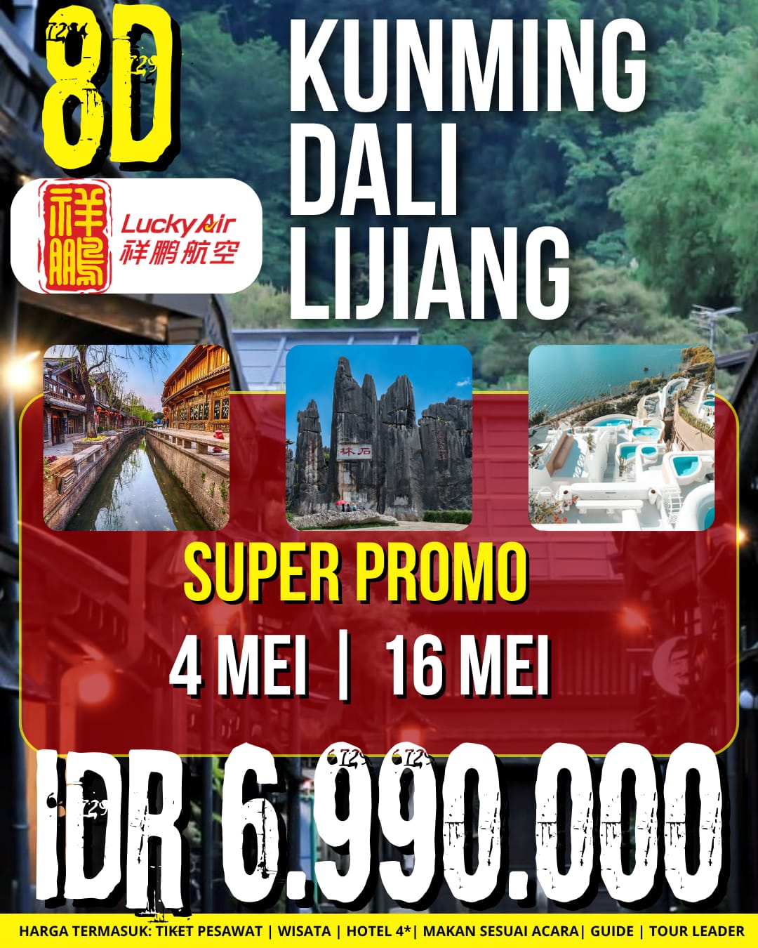 Harga tour dalam IDR, Berdasarkan 30 Peserta + 1 Tour Leader :
